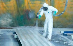 Aplicación de poliurea híbrida (BAST MasterSeal 627) en todas las coberturas del almacén de concentrado. Área aproximada: 20,000 m2